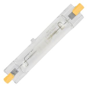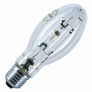 По своей конструкции такой тип аналогичен другим газоразрядным. Он состоит из колбы, наполненной парами ртути, кварцевой дуговой трубки, торированных вольфрамовых электродов, цоколя, диодов и резисторов. Под действием тока электроды начинают светиться. Отличие от других моделей в добавлении излучающих добавок — галогенидов металлов.
